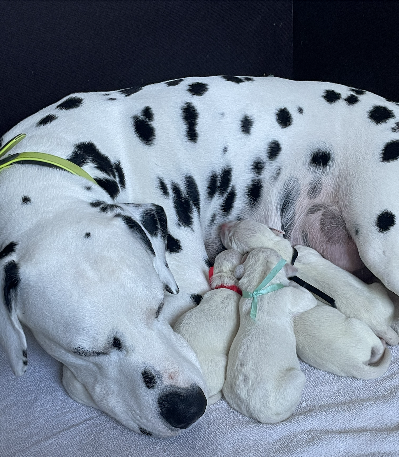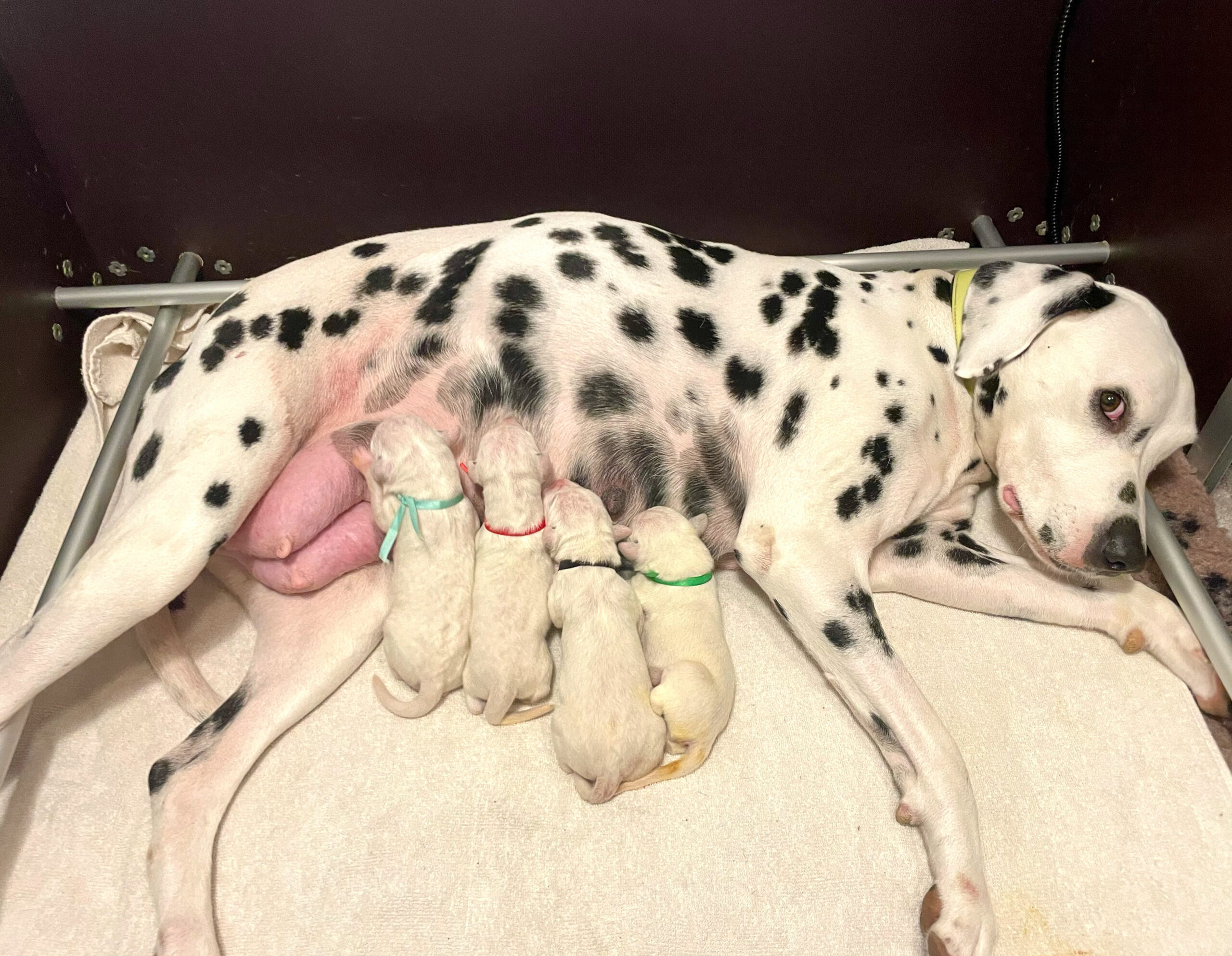 Y de esta forma volvimos a casa: con nuestra perrita sana y salva y con sus 4 bebés, todos machos (dos negros y dos marrones- sin parches), en perfectas condiciones. Final feliz.