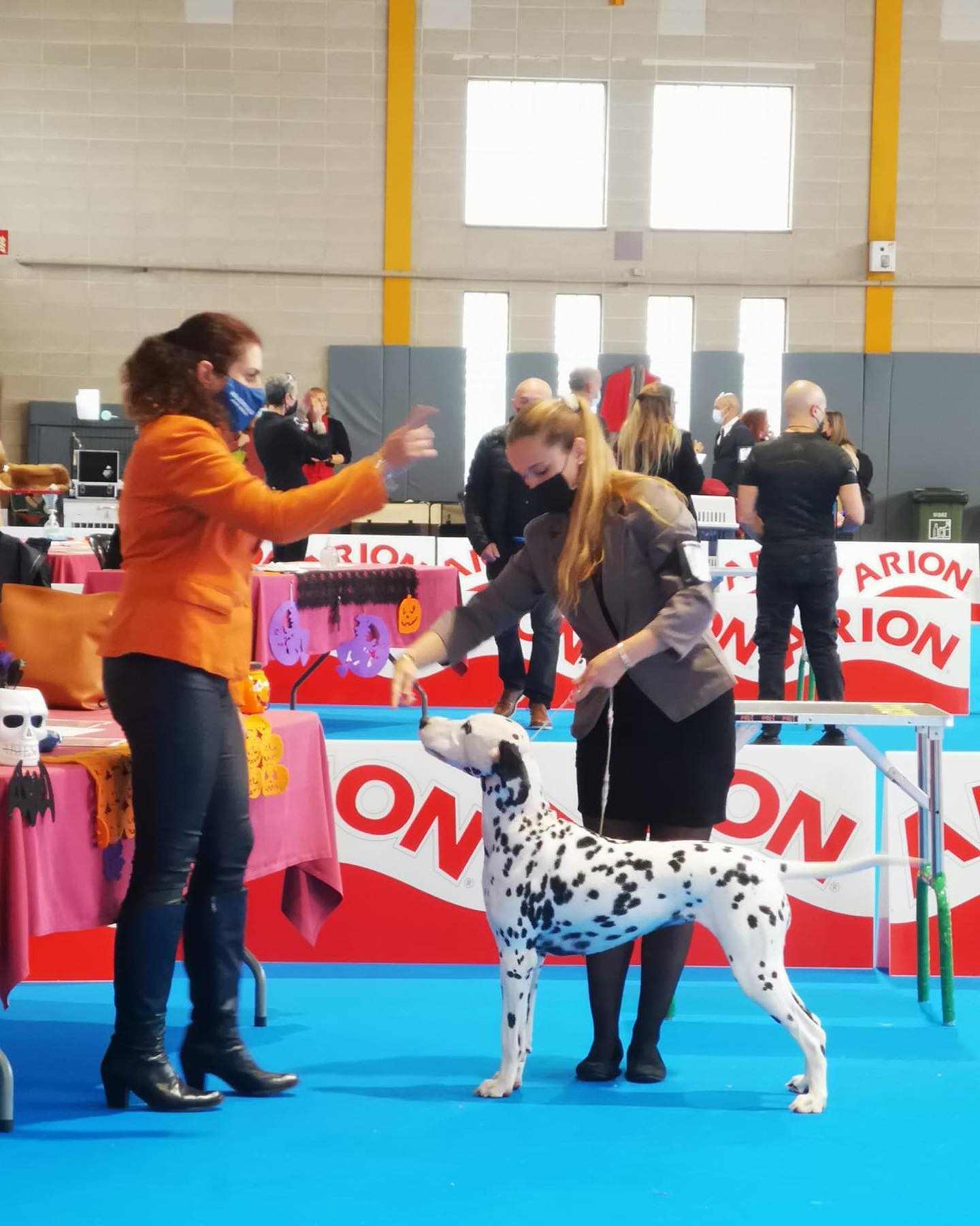 Aunque breve (estuvimos escasas dos horas), siempre es un placer reunirse con el equipo, y la familia de Mamba (Pawppaloosa Black Mamba) y mi copropietaria Olga pudieron admirar a nuestra chica brillar en el ring por primera vez. Se portó de escándalo. Se movió bien, se dejó tocar y abrir la boca sin problema y posó prácticamente quieta todo el rato…y eso, sin apenas haber entrenado. Es cierto que íbamos a «pasear» y a tantear para futuras expos pero oye, yo, encantada de la vida.