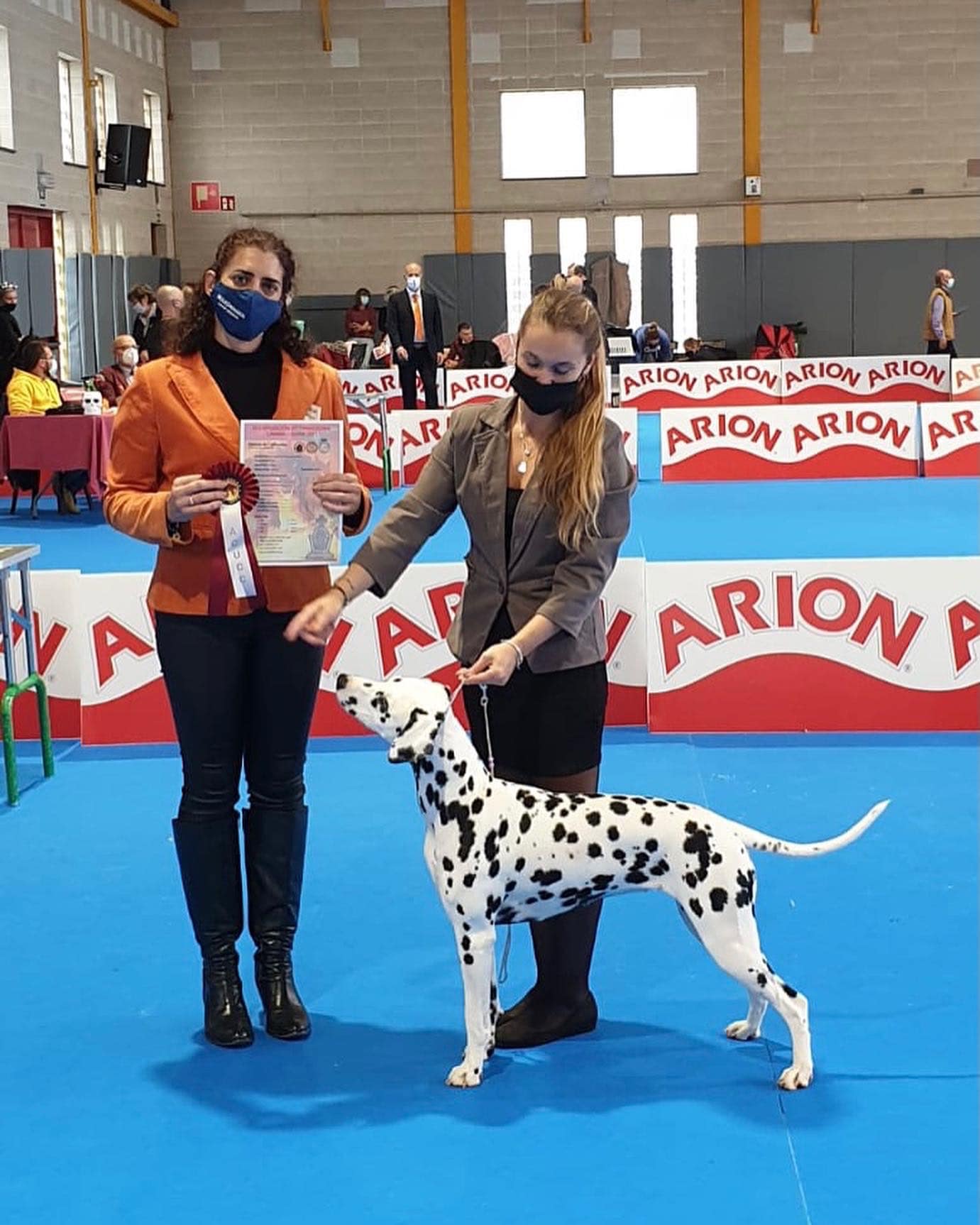 Pues bien, no había precisamente pocos Dálmatas. Con un total de 16 Dálmatas inscritos y bajo el juicio de Vanessa Moyano (ES) conocida, compañera y especialista de la raza, nuestro equipo obtuvo: