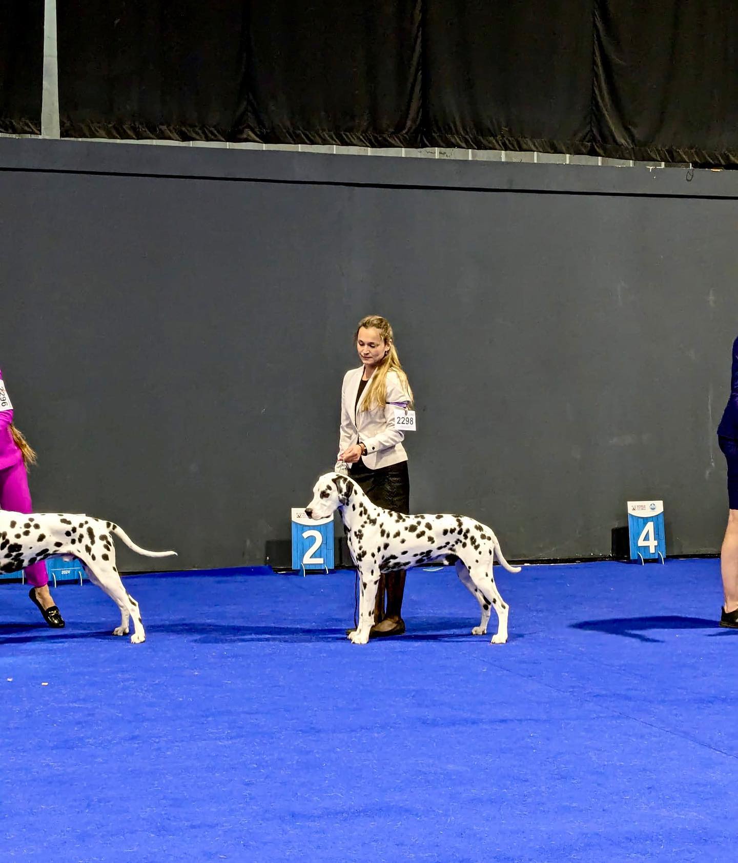 Con casi 13.000 ejemplares, nuestra maravillosa raza contó con 102 inscritos, por lo que pudimos ver a un gran número de Dálmatas y fue una gozada reencontrarnos con algunos criadores y amigos que solo podemos ver y conocer en persona en certámenes de tal envergadura. Las juezas encargadas de juzgar la raza fueron Ivana Bakal para los machos y Zeljka Halper para las hembras y el Mejor de Raza (ambas croatas).